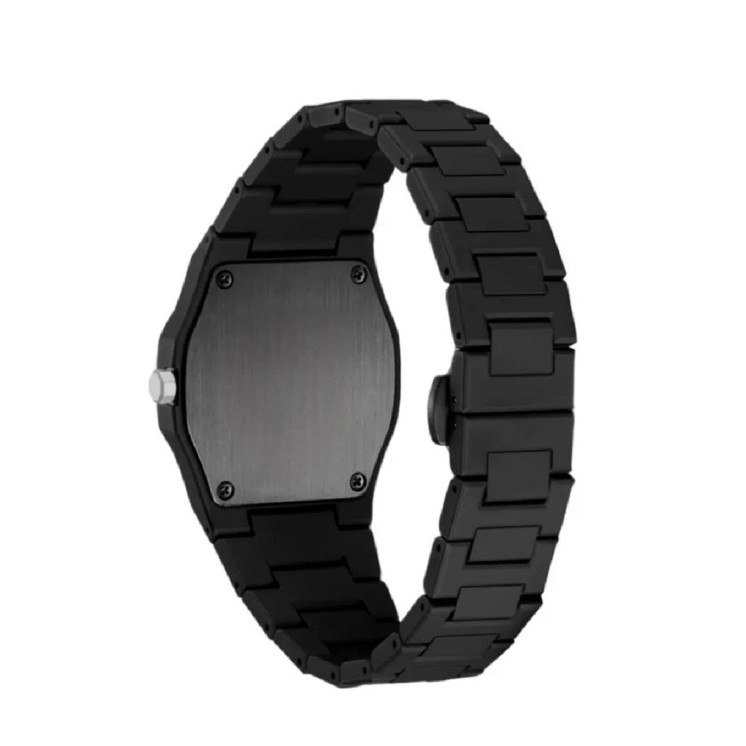 En la frontera entre la luz y la sombra nace este reloj de contrastes perfectos y refinamiento absoluto. Su esfera, dividida entre el blanco perlado y el negro profundo, se realza con números arábigos y manecillas en dorado, creando una composición que irradia equilibrio, elegancia y carácter.